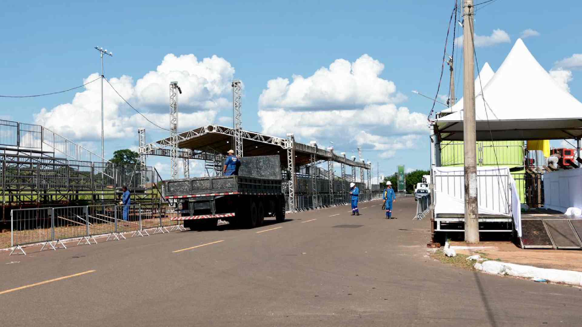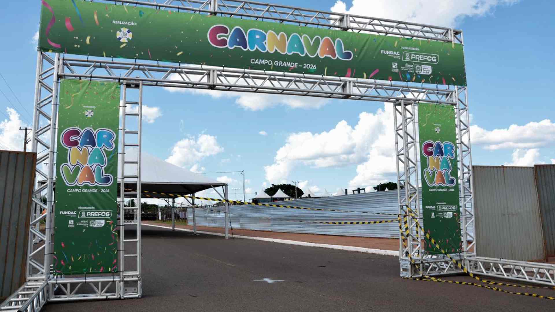 Na véspera do início dos desfiles de escolas de samba, a Praça do Papa em Campo Grande ganha cara de sambódromo. As atrações começam nesta segunda-feira (16), mas no domingo (15) a estrutura já caminha para finalização.