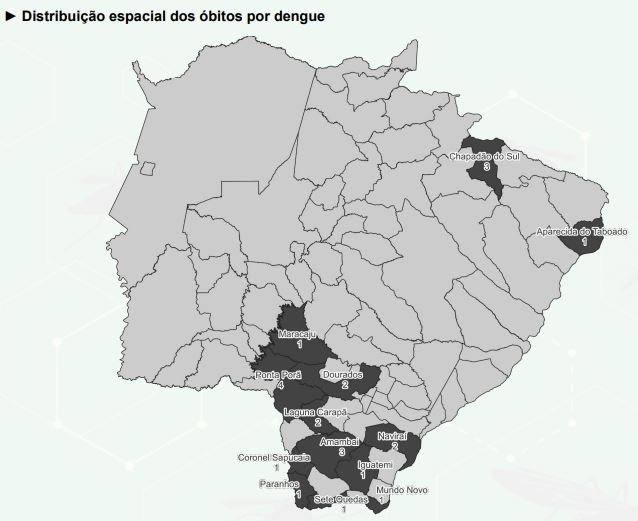 Ainda segundo a atualização de hoje, essas novas quatro mortes decorrentes da doença aconteceram em Iguatemi, Chapadão do Sul (chegou ao total de três mortes no ano), Mundo Novo e Aparecida do Taboado.